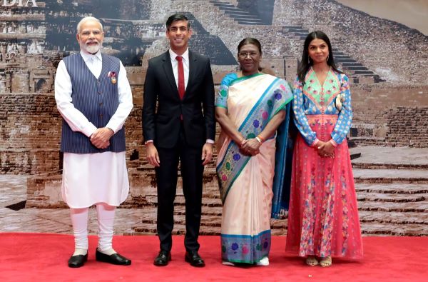 बांग्लादेश की प्रधान मंत्री शेख हसीना ने मोती के हार के साथ एक साड़ी में जातीय अनुग्रह प्रदर्शित किया। ब्रिटेन के प्रधानमंत्री ऋषि सुनक की पत्नी अक्षता मूर्ति ने अपने आधुनिक पहनावे में पारंपरिक स्पर्श जोड़ा।